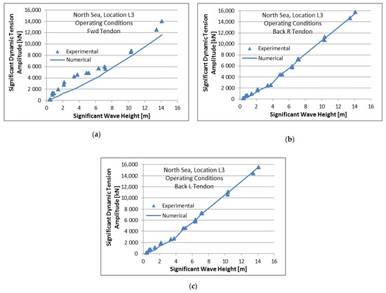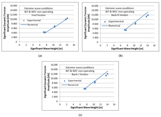 - Following the harmonic waves, irregular sea states were analyzed. A wide range of productive (i.e., permitting the operation of the WT and OWC) sea conditions foreseen for the three REFOS installation locations was experimentally simulated, with the focus being at the performance of the mooring system. The experimental results verified the dynamic loads on the tendons of the mooring system. This is of great importance, considering the critical role of this system, as regards the safety of the platform.
