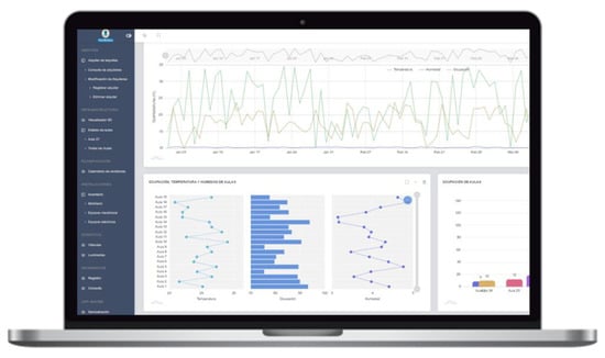 Regarding the COVID-19 pandemic situation, the management system helped identifying the possibilities for this academic year. Detailed information was provided to the managing staff. In addition, internal movements along the building were registered through the O-DM’s [26]. Moreover, the perspective of the COVID-19 framework opened new research lines focused the project into sensorization techniques, considering parameters not studied until this point. The level of CO2 or counting systems are among the possibilities of the self-developed sensors.
