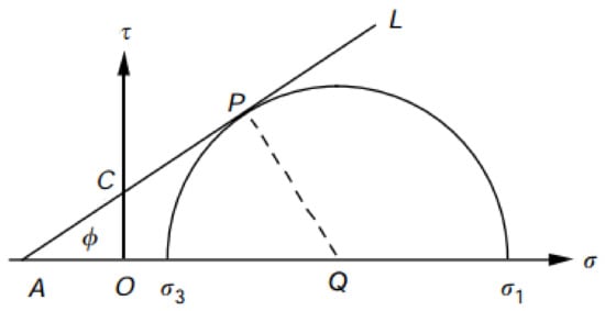 Mohr–Coulomb failure criterion can also be explained by the Mohr’s Circle. Figure 1 shows the Mohr’s Circle and Mohr–Coulomb failure line (AL line). If failure occurs, then the Mohr’s circle becomes tangent to the AL line. This means that for Mohr’s circles that lie under the AL line, the failure does not occur.