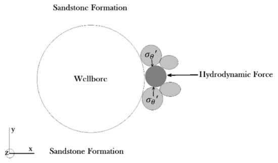 As a reasonable assumption, sanding does not occur automatically within an intact unconsolidated rock. The reason is that generally no fluid force can separate sand particles from the rock matrix. However, in a failed rock, the hydrodynamic force derived from the fluid flow may detach the grains from the sandstone matrix. This hydrodynamic force is described in the following section.