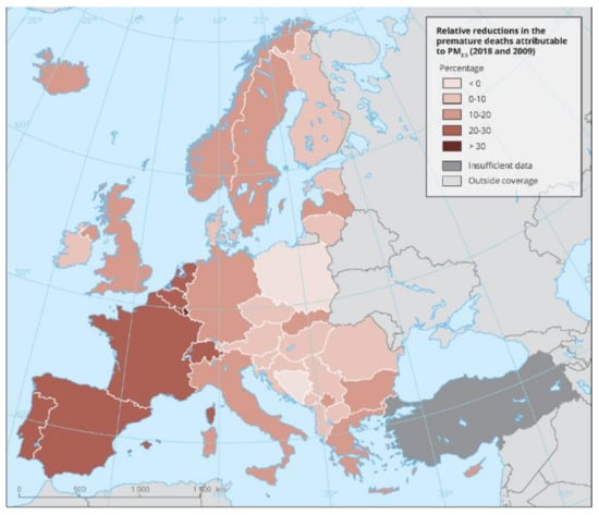 - European Environment Agency. Available online: https://www.eea.europa.eu/data-and-maps/figures/relative-reductions-in-the-premature (accessed on 6 April 2021).