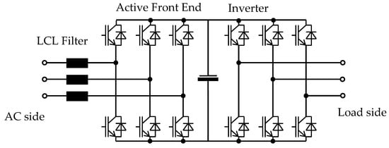 First, on-board installation contains appliances that can generate SI of significant values. SI are produced by power-electronic equipment connecting two AC systems of various frequencies through a DC link. Examples of such equipment are inverters [,]. The output current of the inverter causes voltage ripples in the DC link, which can be transmitted to the input side. Consequently, the supply network may produce SI of frequencies equal to the multiple of the output inverter frequency [,]. For instance, in a 60-Hz power system supplied from diesel-driven generators (DG) feeding high-power inverters, the SI of the following frequencies were reported []: 45 Hz, 135 Hz, 225 Hz, and 405 Hz of values 0.9%, 1.17%, 0.89%, and 0.931%, respectively. This SI contamination was observed in a land power network, which shows some similarities to the ship network because of the application of DG and the high-power converters. DG may produce SI if one of the cylinders works improperly, especially if the frequency of torque pulsations corresponds to the resonant frequency of the generator (the first natural frequency of the rigid-body mode) [].