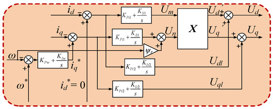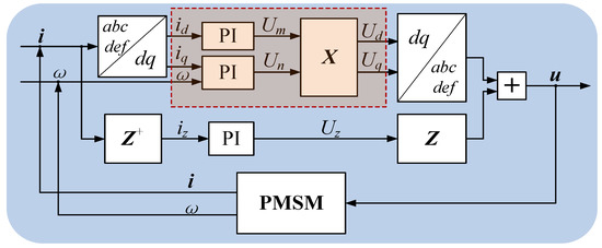According to the above analysis, the tolerant control strategy with harmonics elimination is shown in Figure 5. Z+ is the pseudo-inverse matrix of Z. The part in the red box is applied with traditional PI control, which will be introduced in the next Section 4 in detail.