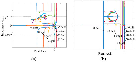 Figure 9. Root locus. (a) Traditional current control. (b) Dual current loops control.