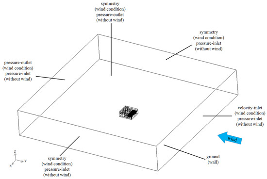 where u10 is provided in this work and represents the reference speed of wind as the height is 10 m. The outlet surface is defined as pressure-outlet. The top and two side surfaces were considered symmetrical. The ground was set as a no-slip wall with the standard wall function adopted.