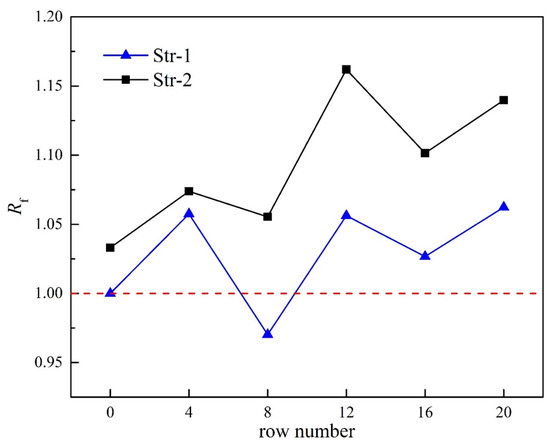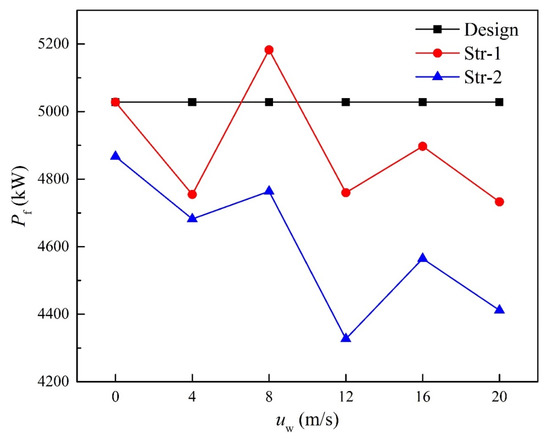 The ratios of the rotational speed of leeward fans for Str-1 are given in Table 4, showing that the actual fan speeds on the downstream side were reduced under windy conditions and the highest value appeared at the wind speed of 8 m/s.