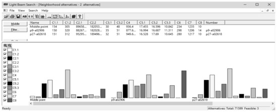 The evaluation of alternatives and the final selection of the compromise EVCI were performed with the support of the light beam searching (LBS) method; the motivation of such a selection is provided in Section 2.3.5. The LBS method was initially proposed by Jaszkiewicz and Słowiński [91] for the problems of multiple criteria mathematical programming and subsequently adapted to the problems with a discrete set of alternatives. A detailed description of the LBS method and its application can be found in the work of Jaszkiewicz and Słowiński [92].