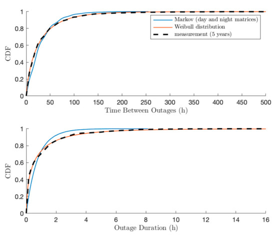 Hence, in this paper, the Markov and Weibull models have been applied for the simulation of grid interruptions, as these models can respectively characterize the random probabilistic outages and also be able to signify rare outage occurrences that could be overlooked with a classical approach.