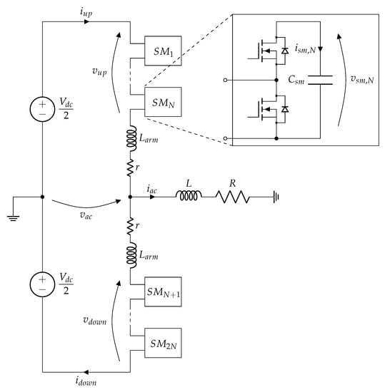 6]. As stated in listed literature, the MMC is the preferable topology for high power and medium/high voltage energy conversion systems, because it offers modularity, voltage and current scalability, high efficiency with transformer—less operation, redundancy at low expenses and reduced output current ripple. Consequently, the filter size is reduced, but because of their complexity, MMCs are challenging from the control standpoint.
