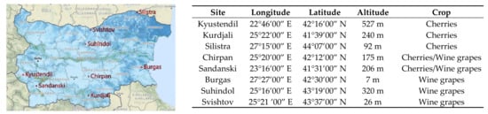 - Ministry of Agriculture, Food and Forestry, Production of Wine Grapes and Wine—Harvest 2019, Agrostatistika, Volume 373, April 2020. Available online: https://www.mzh.government.bg/media/filer_public/2020/04/27/ra373-vinewine2019_final.pdf (accessed on 5 April 2021). (In Bulgarian)