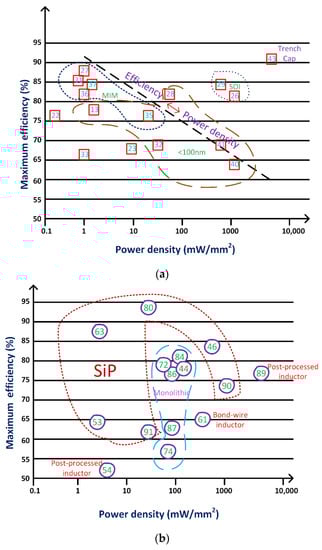 For a wide range of voltage conversion ratios, inductive converters are promising candidates that deliver the best efficiency. Moreover, integrated inductive converters also provide higher efficiencies for a wide range of voltage conversion, along with high current densities. However, they depend on high-quality off-chip inductors [44].