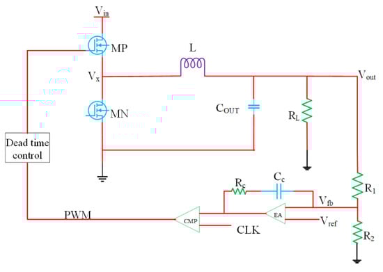Integrated inductive converters face the challenge of the requirement of high-quality inductors [47,48,49]. From the control viewpoint, inductive DC–DC converters allow good control of the output voltage for the variations in the input voltage and output load. Its output voltage is regulated by controlling the width of pulse that is fed to the power switches [54].