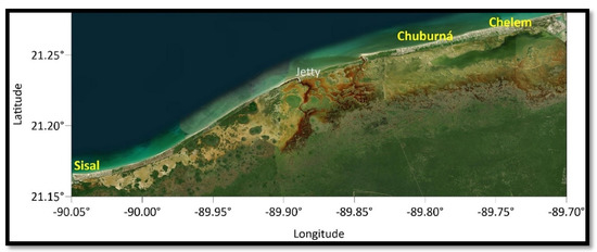 - Santoyo, A. Esbozo Monográfico de Sisal, Yucatán; Reporte Técnico; Laboratorio Nacional de Resiliencia Costera: Yucatán, México, 2017; 119p. [Google Scholar]