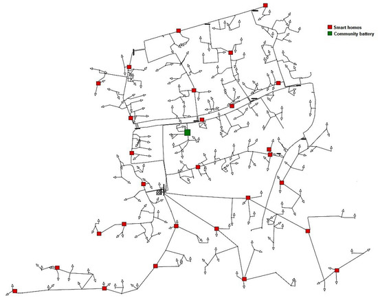 Topology of a real network in Austria with various smart buildings and a community battery.