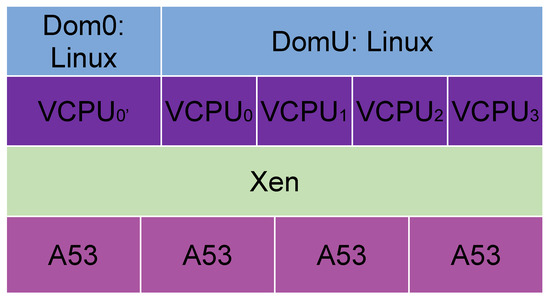 Virtualization requires a hypervisor, a layer of software used as an interface between the device and the OS. It controls virtual machines and allots resources to the physical platform on which it is installed [2]. Hypervisors are commonly used in multicore embedded platforms [3,4,5,6,7,8,9,10,11,12]. Xen is a widely used one on system-on-chip (SoC) platforms.