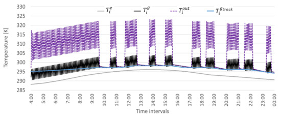 The first objective OBJ1 aims at minimizing the square deviation of the during two consecutive time intervals in order to limit discontinuities in the power feeding the HP, limiting the HP straining. The second objective OBJ2 aims at minimizing the electric power during the overall time horizon. The third objective OBJ3 implements a min–max approach by minimizing the maximum value of deviation between the current indoor temperature in the greenhouse and the target one. The minimization is clearly valid when the indoor temperature exceeds the target value.