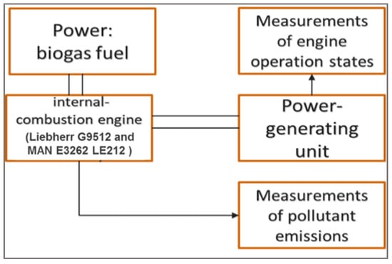 The research was conducted with the use of the conventional fuel (diesel fuel) and two methane fuels with different methane content (natural gas and biogas containing approximately 97% and 60% of methane, respectively). It was planned to conduct empirical research on biogas and biomethane. Due to the lack of availability of biomethane in the Polish market, its fossil-based counterpart—natural gas—was used for the research. The results obtained for natural gas can be treated as representative for biomethane, because both fuels have similar physicochemical properties and are used interchangeably as engine fuel. Different content of methane in tested fuels enabled to evaluate the performance properties of these fuels. The research methodology used in the work is an original conception of the authors. The idea of this methodology is to study the properties of various internal combustion engines used for different applications (specialized engines of power generators, engines for road and off-road vehicles) under various operating conditions, including in the conditions of approval tests. Two cogeneration engines (Liebherr G9512 and MAN E3262 LE212) and one universal engine used in road and off-road vehicles as well as machines, aggregates, etc. (Cummins 6C8.3), were selected for approval tests. Research tests were carried out in two stages.