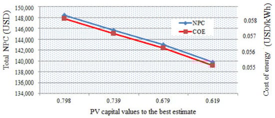 - Of the sensitivity parameters considered, inflation rate variation has more effect on the COE of the system. For a 4% inflation rate increase, the COE tended to reduce by 16.5%. Furthermore, for the same change, the COE is influenced by the discount rate, PV panel efficiency, inverter efficiency, solar radiation and PV capital cost, in the order. With the analyzed sensitivity analysis outputs, solar energy investors from national and international organizations can consider investing in this clean energy technology in Ethiopia.