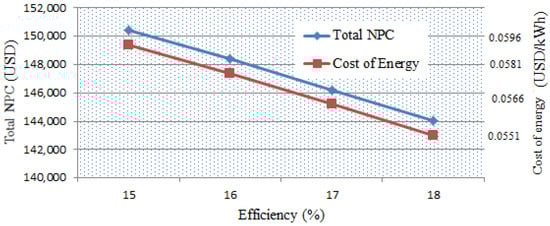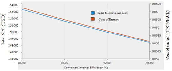 The COE is, furthermore, an important factor and needs to be considered while modeling any power system configuration. It is analyzed as the ratio of the whole lifecycle price to the entire lifespan’s power generation. HOMER Pro utilizes the following equation to compute the cost of energy [57]: