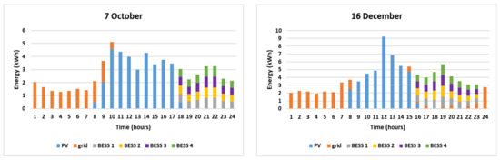Also, in the case of October, it should be highlighted that the energy stored in the BESS for the next day is significantly lower than in the reference case, 87%, due to the reduction of PV production and the higher cover of load from BESS. For the rest of the simulated days, i.e., the simulated days of March, July and December, the BESS have no energy stored for the next day.