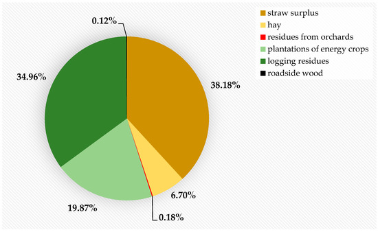 The next stage involved the determination of the solid biomass amount from various sources based on the processed data and the methodology presented further in the paper. As a consequence, the total solid biomass energy potential could be referred to hard coal—the most common energy source in Poland, including rural areas [9]. The specific local conditions in the commune were considered when the solid biomass resources in it were determined.
