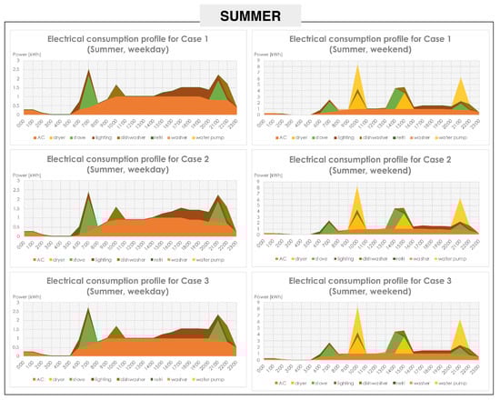 A typical year for this place involves use of the cooling system from April through October, and from November to March, use of the heating system. Table 4 describes the selected scenarios that emulated the energy consumption with different thermal conditions in different seasonal times.