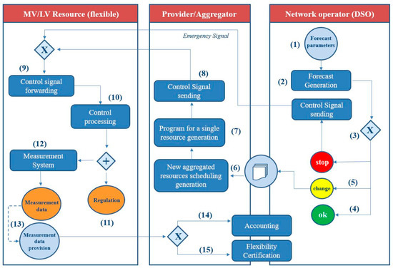 The aggregator has several responsibilities regarding the management of the relationships between DERs and system operators. It will have to manage the role of provider, to aggregate generation/consumption resources and to activate services upon request of the DSO and/or the TSO through its BSP or FSP. Only in case of emergency does the DSO itself intervene directly on the resources that have given availability for this type of service.