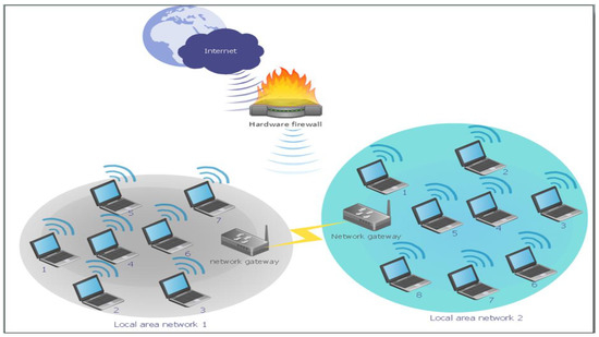 The population of the nodes—the number of mobile nodes is initiated randomly, according to the node’s parameters. Figure 3 shows the number of LANs within WLAN, where each LAN has one gateway node.