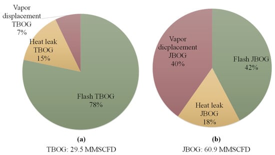 BOG distribution by source, (a) during holding mode, (b) during loading mode.