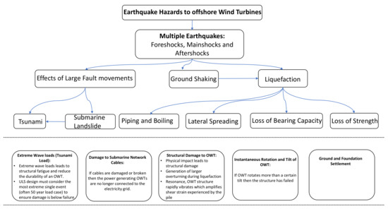 Seismic hazards to an offshore wind farm are illustrated in Figure 6. The necessary steps in a seismic risk evaluation have been studied by several researchers [7,8,9,10,11,12,13,14,15] and briefly summarized below: