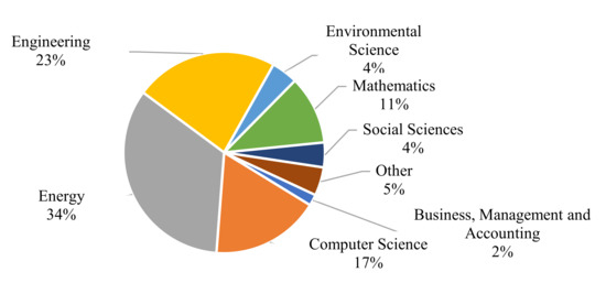 At the same time, the share of publications in the field of energy in the period from 2016 to 2020 accounted for more than 3/4 of the total. Among publications in business, management and accounting, environmental science, social sciences, multidisciplinary studies, economics, econometrics, and finance, the most significant number of publications during this period belongs to environmental science (45%) and social sciences (33%).