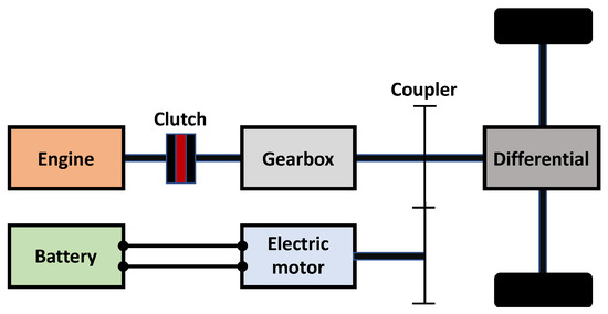 Schematic representation of the considered parallel hybrid electric vehicle (HEV) architecture.