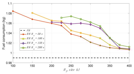 Fuel consumption results achieved with RH-based EMS compared with the FH approach with different Hs and Hp.
