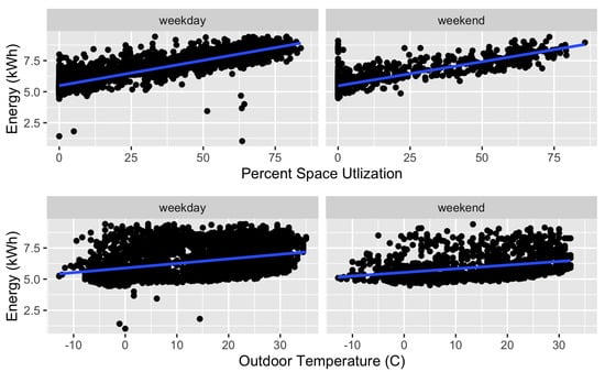 MLR of floor energy consumption compared with space utilization (top) and outdoor temperature (bottom).
