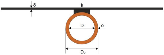 The nomenclature for the absorber plate and tube used for the experimental study is shown in Figure 3, where Di is the internal diameter of the tube, Do is the external diameter of the tube, b represents the bond width between the serpentine tube and the absorber plate with thickness δ, and δt is the thickness of the serpentine tube used.
