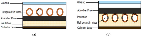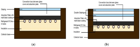 Experiments were performed with a single-glazed flat plate collector and a double-glazed flat plate collector, as shown in Figure 11a,b.