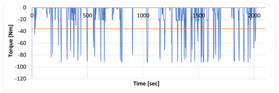 Variation in the total braking torque generated by electric motors with the average value marked for “eco” driving.