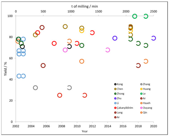 | Author | Borate | Other Reactants | Excess of Reactant/% | Additive | t/min | Yield/% | Ref. |