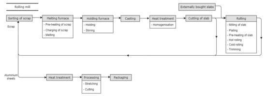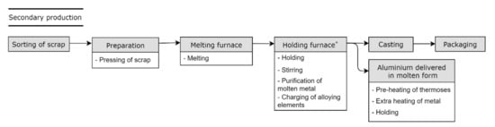 Figure 5 shows the production processes used in the secondary production of aluminium.