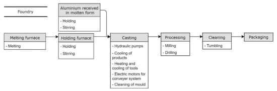 58]. To the authors’ knowledge, there are no significant differences in the layout of the processes between the Swedish and the global aluminium industries. The authors therefore believe that the suggested taxonomy for EEU and the KPIs are applicable to the global aluminium industry. For aluminium foundries, several different shape casting methods can be employed [