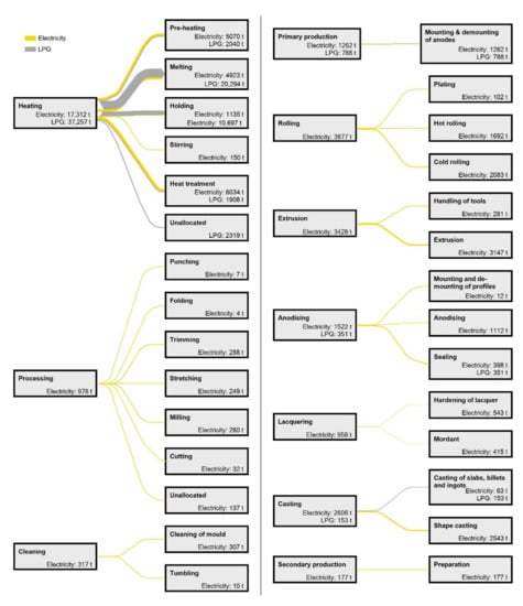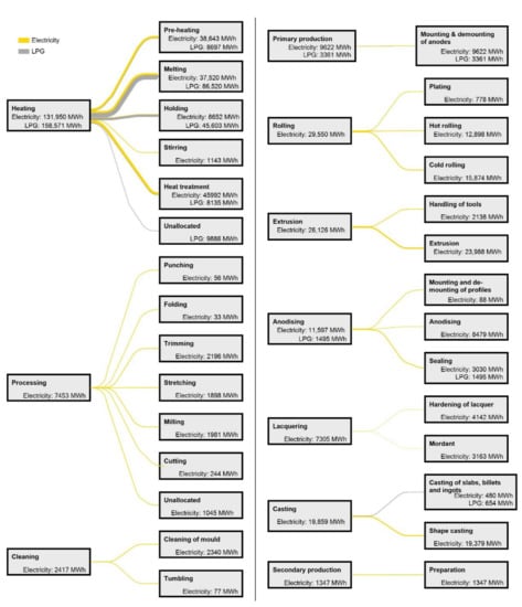 15] gives values for yields and specific energy use for certain processes in the aluminium industry. Some life-cycle assessments, e.g., Peng, et al. [