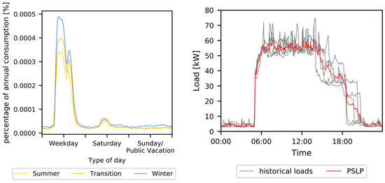 As already described, several profile sets are available. Due to the characteristics of the load profiles in the observed commercial building, the G1 profile is chosen which is for commercial buildings with working hours of 8–18 on working days.