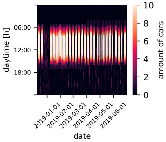 As an external feature, the temperature is used, which has been shown to have a large impact on the load and a good correlation with it [40]. As there is no data measured on site, datasets from the “Deutscher Wetterdienst” (DWD, German Meteorological Service) are used [41].