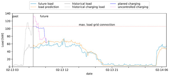 - Load management: Comparison between unscheduled and forecast-based BEV charging.