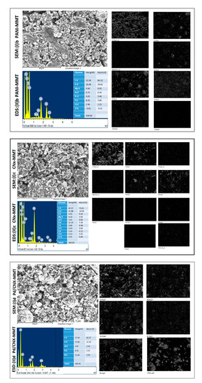 - Kenane, A.; Galca, A.-C.; Matei, E.; Yahiaoui, A.; Hachemaoui, A.; Benkouider, A.M.; Bartha, C.; Istrate, M.C.; Galatanu, M.; Stanculescu, A.; et al. Synthesis and characterization of conducting aniline and o-anisidine nanocomposites based on montmorillonite modified clay. Appl. Clay Sci. 2020, 184, 105395. [Google Scholar] [CrossRef]