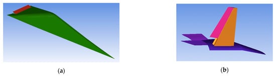 The effect of control surfaces is taken into account through a simplified approach (inviscid calculations) and simplified configuration selecting only the parts of the vehicle of interest. For example, for the effect of flaps, a wing-flap configuration is used (Figure 11a), while for the canard, a stand-alone one. As far as the body-flap is concerned, a more complex configuration has been generated, accounting for both the rear part of the fuselage and the vertical tail (Figure 11b). Viscous corrections are not considered, since the delta values (with respect to the clean configuration) are used.