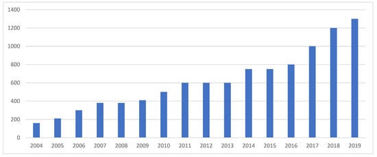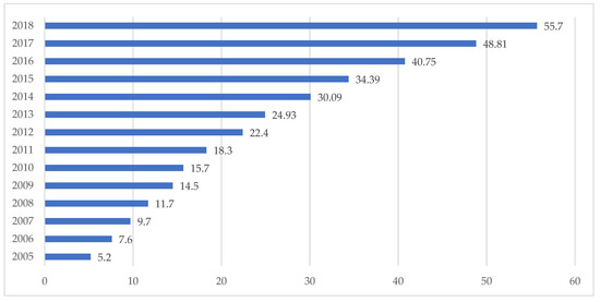 As we can see from Figure 1, global wood pellet production has increased from 5.2 MMT (million metric tons) in 2005 to 55.7 MMT (million metric tons) in 2018. The increase reached 971% in the period. Such an increase is the effect of the increasing demand for renewable energy sources in the world.