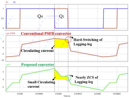 Comparison of the circulating current in the conventional PSFB converter and proposed converter.