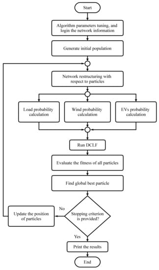 The penetration of EVs at different hours of the day causes serious and adverse changes to the system load curve and leads to an extra load in the system [1]. In this case, some values are produced based on probabilistic distribution functions. Then, 10,000 samples are taken using Monte-Carlo simulation to evaluate each solution. The total average weight of the output values can be obtained using Equation (3) as the best estimate of the probabilistic load.