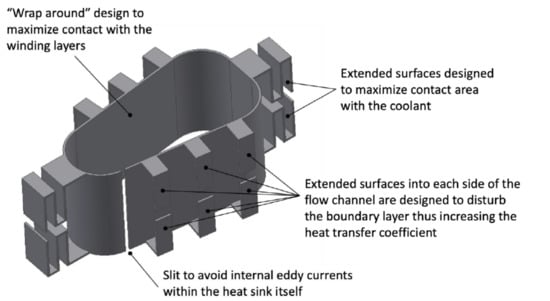 The author is aware that further analysis is required with respect to the electromagnetic effects and eddy losses of the integrated heat sink, cost analysis, and testing with a full motor. This is beyond the scope of this paper, which provides a route for improvement in current density, and will be investigated in a separate study. Further improvement of the heat sink, for example, through micro-features, is also possible, and is also the subject of an ongoing investigation.